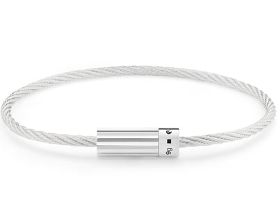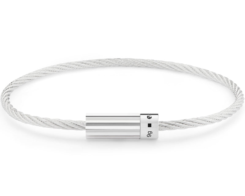 Inspired by industrial design and, more specifically, by the architecture of cable-stayed bridges, the iconic cable bracelet juxtaposes minimalist design with high technicality. A creative approach where form follows function, resulting in a twisted precious metal cable sealed by a cylindrical clasp with an invisible screw. Le Gramme cable bracelets are crafted in France from recycled precious metals.