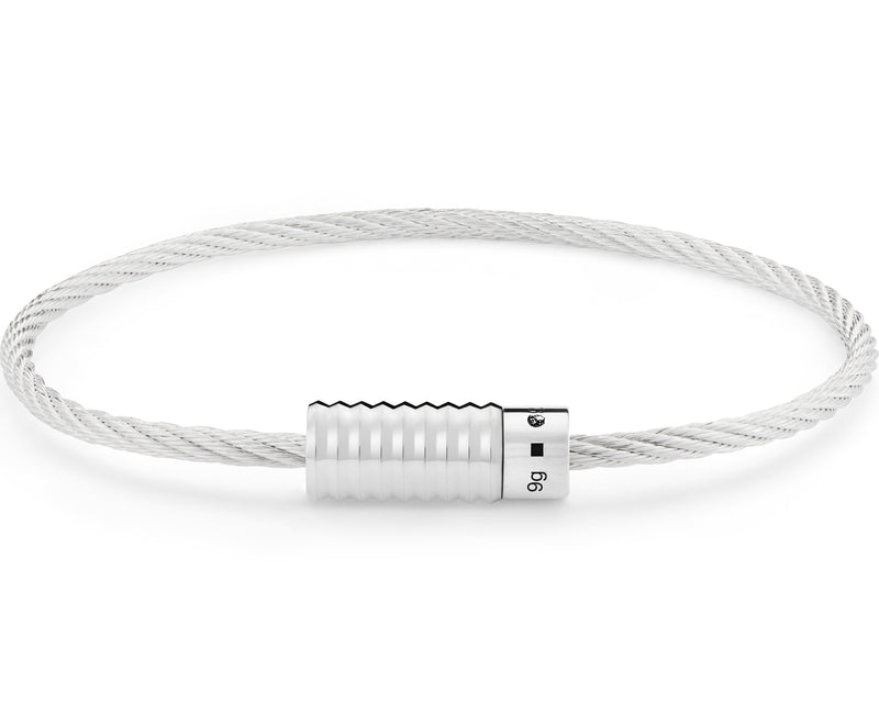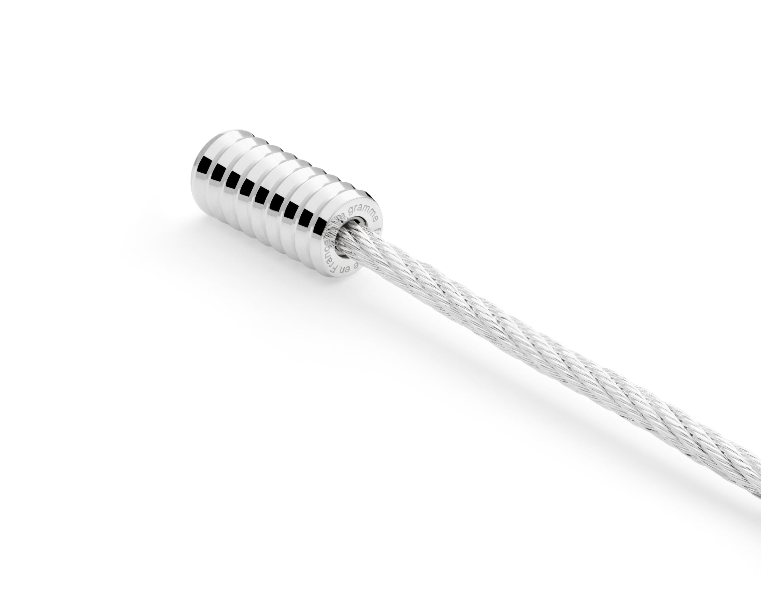 inspiré par le design industriel et plus particulièrement par l'architecture des ponts à haubans, l'iconique bracelet câble oppose un design minimaliste et une très grande technicité. une approche créative où la forme suit la fonction, donnant lieu à un câble en metal précieux torsadé scellé par un fermoir cylindrique à vis invisible. les bracelets câbles le gramme sont fabriqués en France à partir de métaux précieux recyclés.